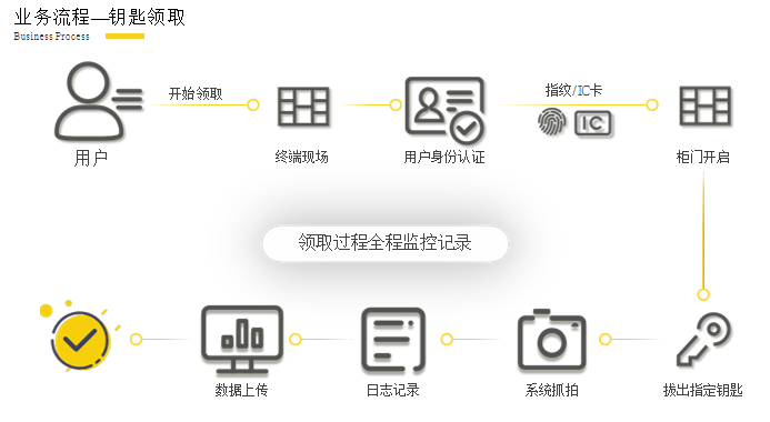 系統包括智能鑰匙柜、終端控制系統、管理平臺、中間件以及輔助設備。主要功能包括鑰匙領(lǐng)取、鑰匙歸還、鑰匙柜設備管理、視頻監控、安防報警、視頻對講、遠程監控、遠程操作、遠程設置、遠程升級、用戶(hù)管理、日志、報表、統計查詢(xún)等功能。